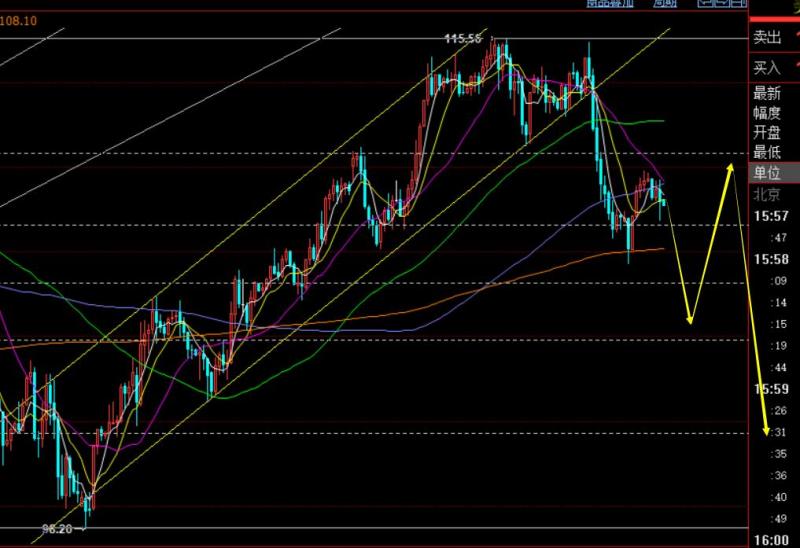 原油方面,周线上周收报一根较长下影十字长,而本周一直接续涨,这样的上拉往往动能不足,容易掉下来,周二和周三坚持以高空思路对待,多次挂空都差一点距离未打进去,昨晚EIA库存数据公布利多无法上冲,和预想一致,果断112.3追空,最低下跌至107.5,一波500点利润空间,一个晚上就可以得到,这就是原油的刺激感,但风控一定要做好;今日早盘提示110.5处存在短期压制,它是隔夜跌幅反抽382分割压力,大幅下跌走弱后,一般382会首当其冲压制一次,接下来欧盘就看能否破位今日早盘107.5低点,一旦失守,下方支撑就关注105-104.8(618分割位置),会有一定买盘支撑,稳定可考虑反手短多,但最终拉升一波后,还会掉头向下,去试探近期慢反复上行通道的下轨位置100.5处,也是波段空的最终落点,同时具备反手波段多的条件,这是按06合约来报价; 因此,短期阻力110.5和112,短期支撑107.5、105,强支撑100.5,这几个都是后续的关键所在;