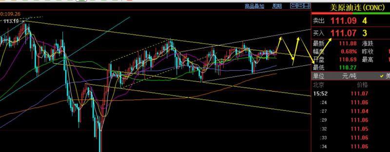 原油方面,连续五日都是窄幅区间震荡反复运行,108-109为支撑,111-112下为压制,一直走不出来,短期就继续围绕区间内运行,最终判断会选择跳水下滑,试探日线通道下轨支撑102一线处,上轨强压是115-115.5也是波段做空参考区域;