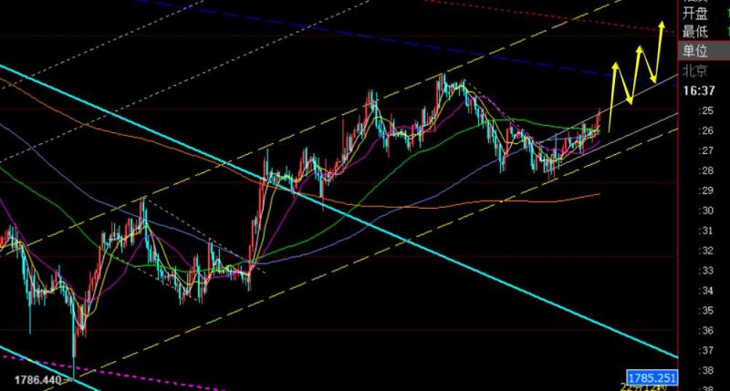 第一,黄金方面,昨日整体维持1850-1840区间内反复底部整理,由于周三隔夜收盘前,是一波探底拉升,力度也可以,因此昨日亚盘先下探,依托1842上方布局低多尝试,加之短周期macd处于顶背驰,同时按照5月18日走势循环,一旦稳住上行通道下轨支撑,则极有可能迎来新一轮反弹修正上行;只不过昨日的走势的确很磨人,几次试探通道下轨,也刺破了下42,较为保守的只能先选择本钱调仓,等1850-1842上下有效破位后再择机进场;而最终23点出现一根底部饱满大阳,结束22点前的二次下探过程(日内亚盘下跌,欧盘无力反抽也是弱势,美盘就存在二次下探的概率),因此盘中仍给出1845上逢低陆续进多,今日最终站稳1850,冲击1860高度,预计展开修正力度,1870就恐挡不住;