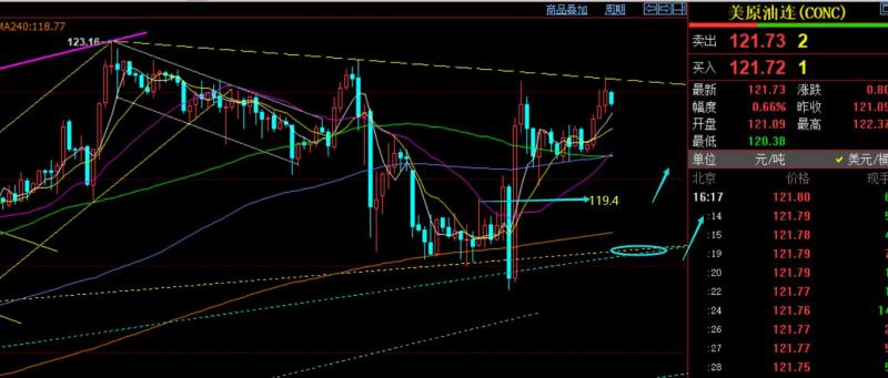 原油方面:昨日整体思路和方向没错,就是维持偏强逼空运行,这几日只是高位箱体在横盘震荡,以时间换空间的手法,来等待后市进一步的强攻拉升,去逐步逼近前高130关口;惋惜的是,昨日美盘原油也进行了一次快速扫盘: 原本22点大阳,已经有效突破站上日内压力位119.2,但23点来了一根大阴破位新低,然后凌晨直接一根大阳反包再破新高,典型的洗盘行为;较为可惜的是,低位一直挂着117逢低多,差40点未触及,最低只给到117.4,对于原油波动率较大的品种,一旦能把握相对低位或高位,利润一旦放大,就可以尝试拿波段,往千点目标去努力看,抓住一个大单,就可以顶的过几个小单;