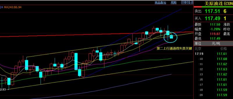 原油方面:昨日亚盘直接上涨,欧盘压制隔夜高点下横盘抗跌,美盘先拉升一波破前高,半夜再大幅跳水;昨日文章中解读,一旦欧盘始终无法突破隔夜高点,美盘是容易冲高回落的,而时间节点最好是卡在22点后一直不上破通道,再去参与空稳妥;昨晚是连阳突破了短期趋势阻力通道线,就不急于布局空,凌晨前一直处于高位运行也就不去参与了,当然也不好追涨,因为短周期macd处于一定顶背驰状态,挂了118相对低位的多单,极限117支撑上逢低建议去多,最低116.6,幸亏放大止损给出116,不然洗盘就在所难免,那么此多单今日早盘119及上方也就建议盈利保护了;