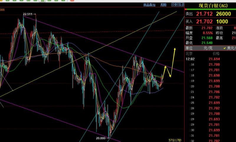 第二,白银方面:昨日运行区间也小,21.45-21.75内窄幅运行;