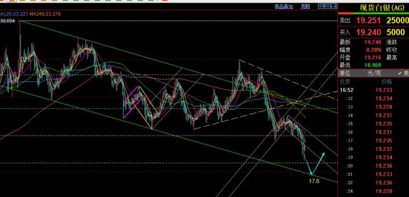 第二,白银方面:20.1-20阻力未站上,失守19.6支撑,也就同步下滑走跌,最低跌至隔夜19.1一线;