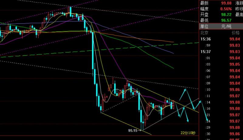 操作思路:先留意99下压制,看97.5、95.3,强支撑93-92,属于日线下一个启动点;若欧盘上冲破高,则上移阻力关注101下压制情况;