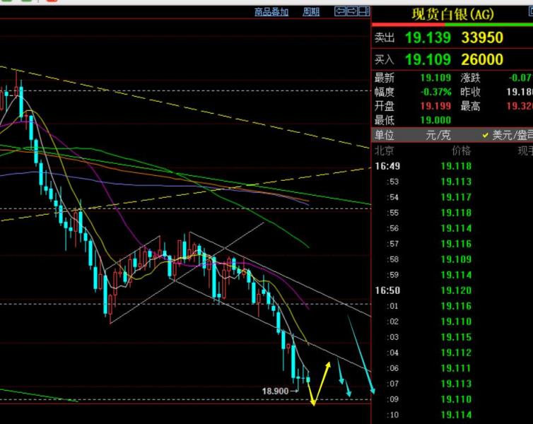 第二,白银方面:昨日指出日线5均线19.5下看压制为主,最低下探19.2一线,运行区间也狭小;
