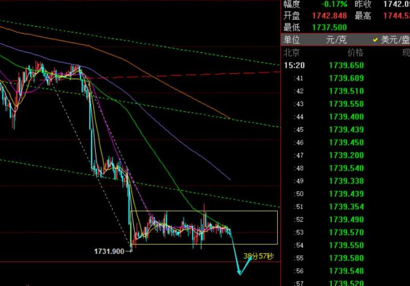 第四,黄金小时线级别:隔夜冲高回落,凌晨横盘于1740上,今日亚盘还是围绕1740一线窄幅整理不动,对应macd已从底部的金叉红柱放量转为死叉绿柱的出现,说明承压作用也慢慢加大,横盘区间的有效压力1747.5一线始终无法站上,建议此位置下仍保持看空对待;