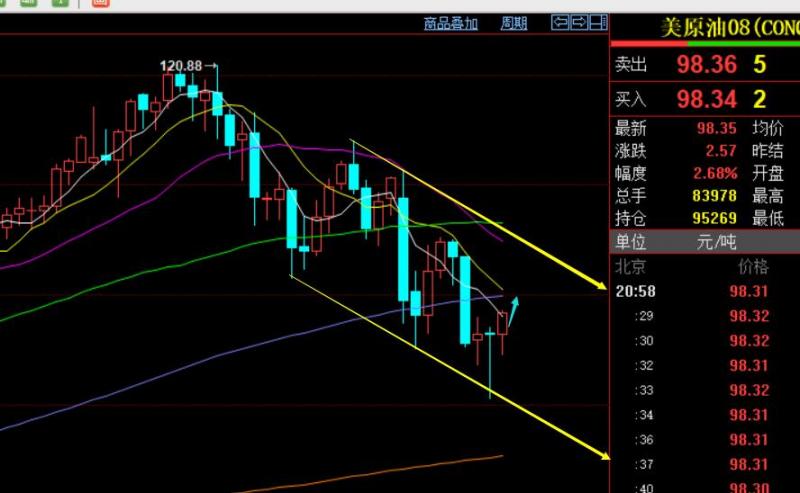 操作思路上:96.3上维持继续看反弹上行,压力是99附近,若此处被有效站上,则可能进一步推动拉升指向100.5-101;