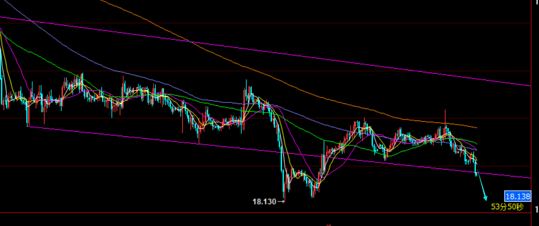 第二,白银方面:昨日指出18.9及上方阻力压制看下行,最终也冲高回落;