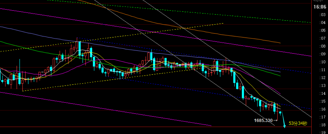 第三,黄金小时线级别:隔夜弱势破底,早盘压制10均线直接走慢跌续跌,风水岭明确就是早间高点1697.5一线,此位置不破,则维持弱势下行;另外,10均线压力下移1693,也需关注承压;在慢跌情况下,要时刻谨慎macd底背驰的反扑,欧盘期间以及不太会,因为没什么消息面推动,保持弱势看跌即可,突破风水岭再调仓转为震荡思路;