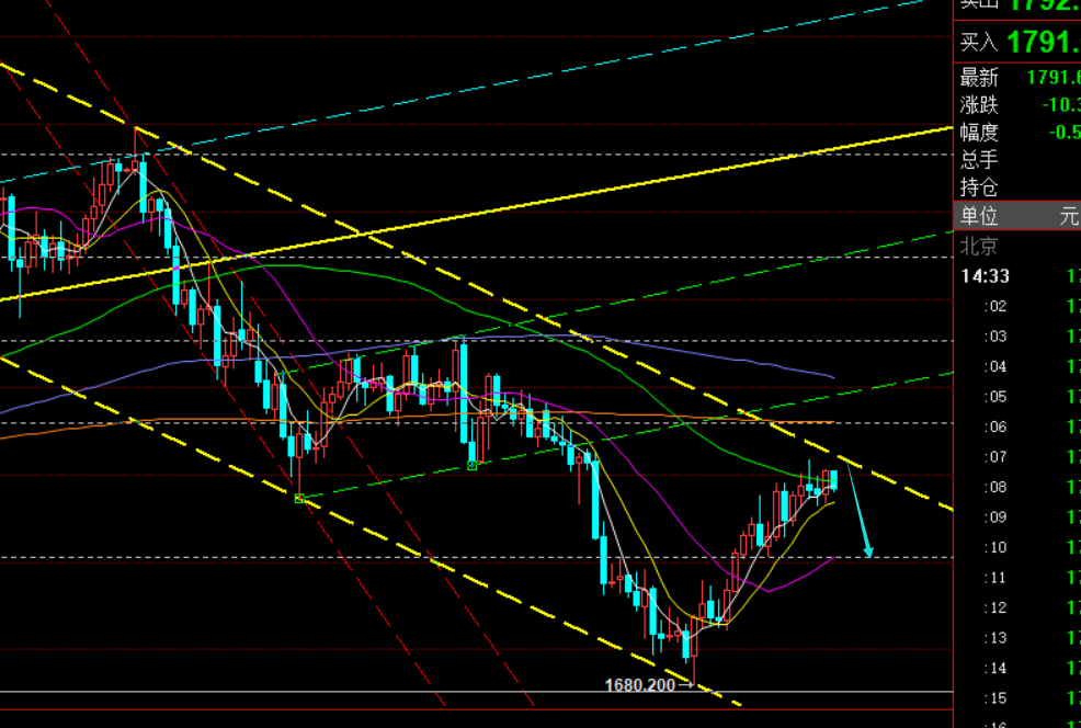 黄金操作思路上: 1800-1810是震荡压力区,分批去布局高空;支撑1782-83上,一直不破的话,出企稳形态则考虑短多试探,一旦下破有效,则提前跟空进去;