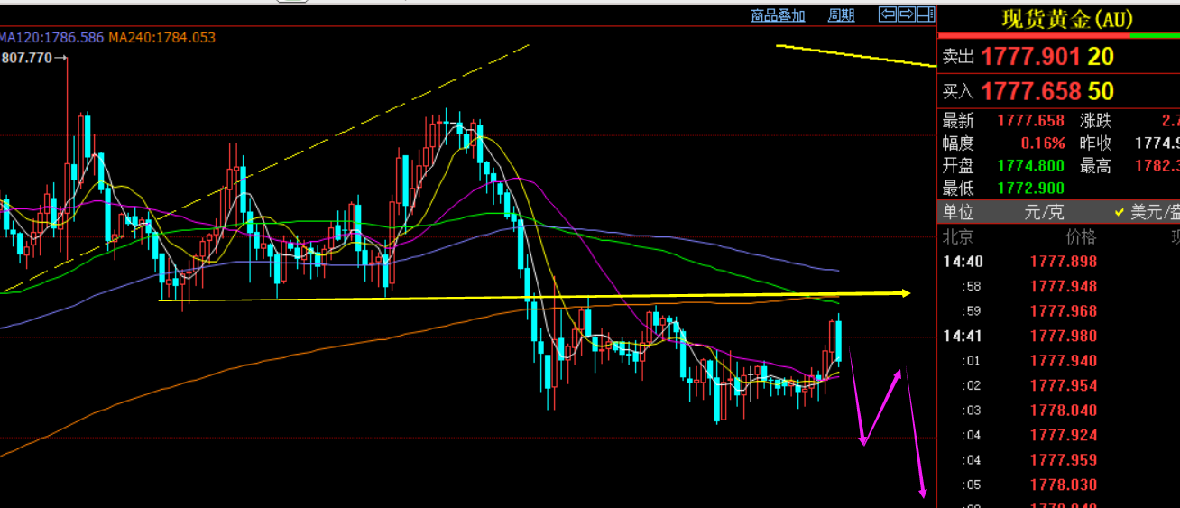 黄金操作思路上: 1784下仍维持反弹空为主,支撑目标1774-70、1765-60、1756-52;