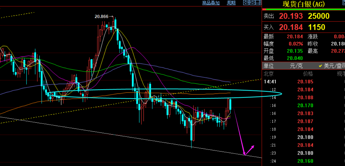 第二,白银方面:昨日指出20.3压力下进一步看压制下滑,支撑19.7;