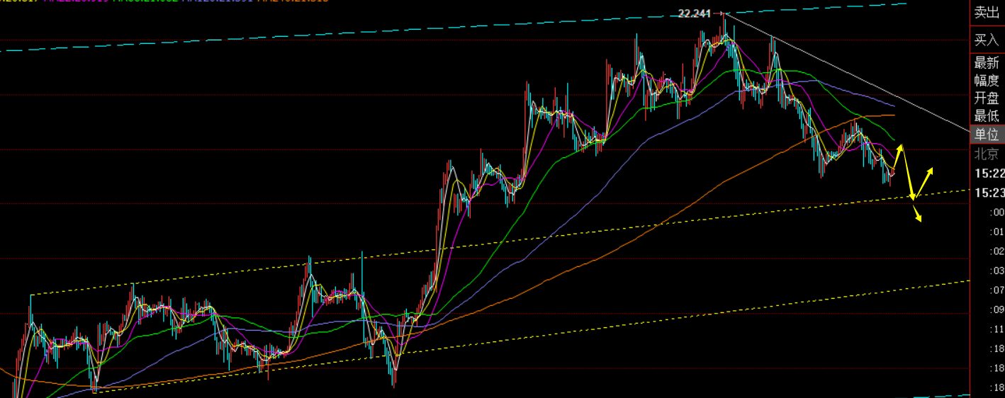 第二,白银方面:21.4压制不过,承压于小时线年均线21.2下也成功下跌一波,抵达20.8一线短期目标;