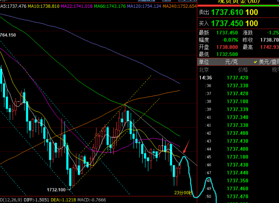 第一,黄金方面:昨日提出日线短期均线死叉,拉高容易诱多下探,且日线四连阴,超过强势回调的时间周期,容易进一步的走下行修正,文章指出1747下看压制,最终如期迎来一波震荡下跌,虽很缓慢,但过程不重要,只需耐心即可;