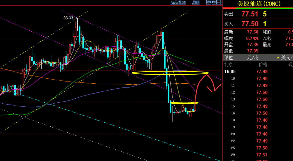 原油方面:同样昨日原油也是洗盘,且力度更猛,早盘从80到81.8,然后81.8又回到80,欧盘从80拉升至82.8,美盘从82.8跳水至76.8一线,这来回的涨跌幅度轻松过千,稍不留着很容易踩坑被扫; 日线一根大阴又似乎打破了前几日的震荡反弹格局,且看今日收线形态;当前也是底部小区间做震荡,选择争夺方向,阻力77.8一线,支撑76.8一线,若向上突破则会修正一波至80下;反之,向下破位则弱势延续至76.3,甚至更低;个人也是希望市场选择先反弹修正,因为那样才有好的做空位置;因为直接续跌,短周期macd会底背离,去低位跟空容易刺破踩雷;总体上,今日稳健建议80下压制高空,先拉低则背离下轻仓参与企稳短多;