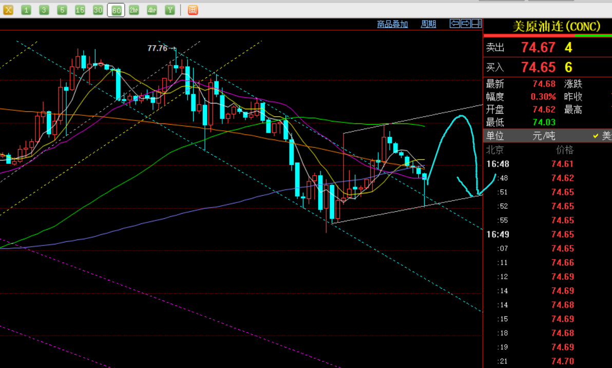 原油方面:周线压制短期5均线回落,收盘仍承压77下方,只要未能重回此位置上,中期还有望进一步的压制下调;日线压制中轨和下跌通道的上轨阻力,产生共振,未上破前,也是继续看回调下行,也就是76.5-76.8下继续看跌为主;短线方面,早盘价格有所突破上周下行通道,因此先看一定反弹,等待日线压力去接着看回落,但反弹力度不大,并未给到预期好的狙击点;当前压力关注75.9下和76.5下,等承压信号,支撑73和72;