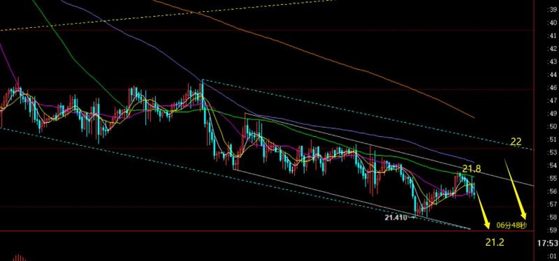 第二,白银方面:支撑21.35一线刚好符合暂时撑住,阻力21.9下运行也符合,区间内操作;