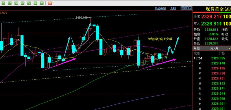 郑氏点银:黄金2308上存在震荡反弹,2345下压制 回顾昨日行情走势及出现的技术点: 第一,黄金方面:昨日坚持持有2310上多单,价格一直守住通道回测支撑线,最终美盘ci利多,一口气冲到2340上,成功拿下一波;而回踩触及2320出现买盘支撑,二次提示再度触及它仍可再去看涨,可惜只给到2321.5