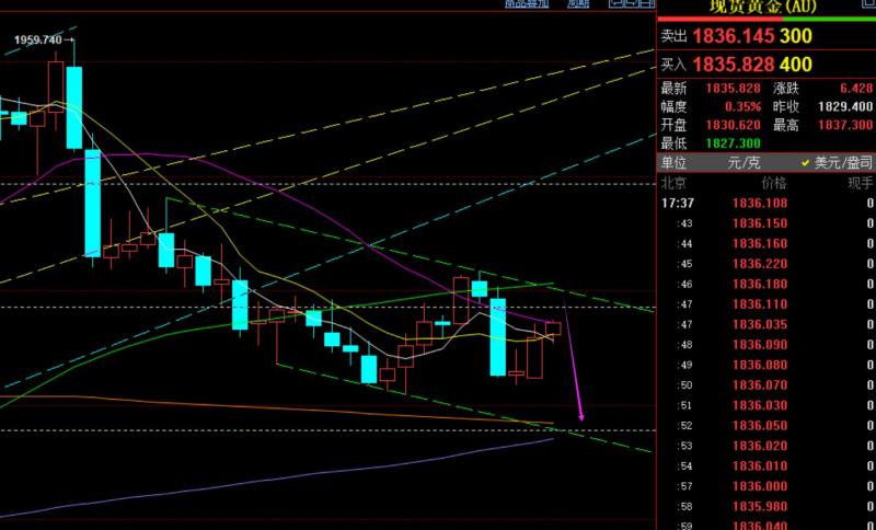 回顾昨日行情走势及出现的技术点: 第一,黄金方面:昨日亚欧盘一路承压小时线中轨,它是一定转跌的标志,也就提出1850一线继续看承压下行;当美盘失守1845-43支撑有效后,就意味着有延续下跌动能,最终在鲍威尔讲话刺激催化下,加速下跌,一口气破位1837、1830、1820等多次关键支撑,最低触及1810一线;其实当