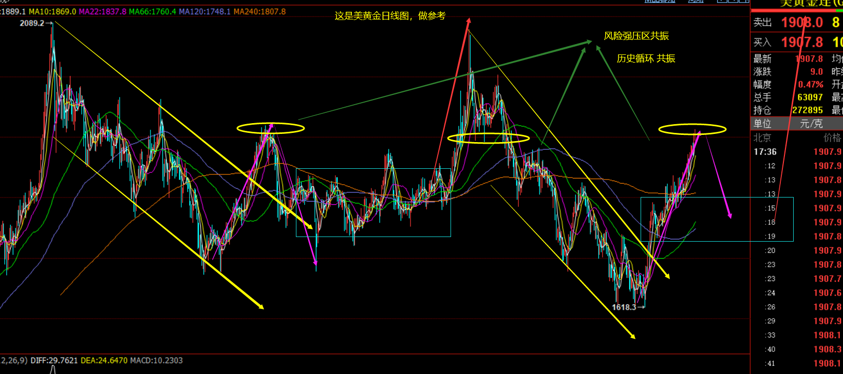 郑氏点银:蓄势待发再摸顶,震荡逼空临尾声 回顾昨日行情走势及出现的技术点: 第一,黄金方面:昨日早盘先拉升一波,承压通道反压1935连跌回测至,这波跌幅拿下,连阴力度不错,欧盘虽有反抽,但只要不破早间高点,美盘仍有二次下探动作,刚好触及日内跌幅618分割阻力再次打压一波至1911一线,这