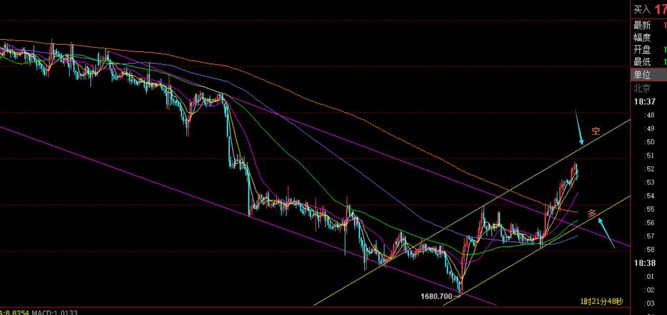 郑氏点银:黄金避险消退终结逼空,原油依旧是空 回顾昨日行情走势及出现的技术点: 第一,黄金方面:昨日指出价格一旦上穿1780上方,就步入了多头风险区域,容易冲高走跌,这是按照2070-1680连续三波下跌,按照每一波循环反弹100美金来推算;苦苦等待一晚,ZF没有任何行动阻拦,因而再无避险刺激,凌