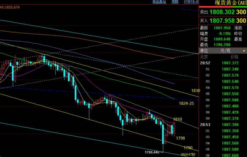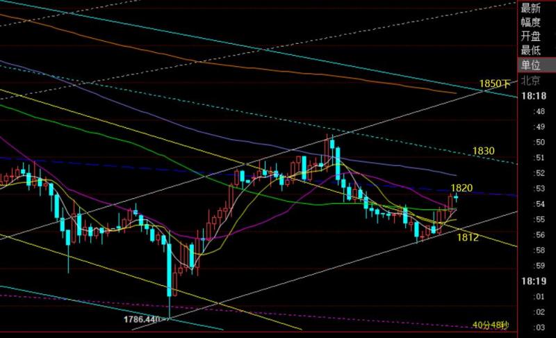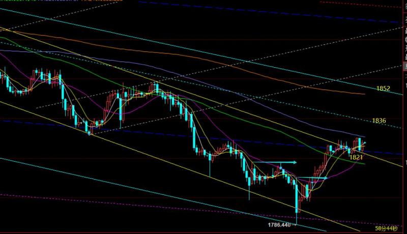 郑氏点银:黄金迎来超跌反弹,原油延续逼空上涨 回顾昨日行情走势及出现的技术点: 第一,黄金方面,上周五隔夜凌晨后压制1818.5下运行,昨日早盘先反弹则依托此位置阻力先做空看压制,只是点位上略差1美金未给到进场机会;随后,欧盘迎来一波快速急跌,最低触及1786一线,而1790附近是多处下降通