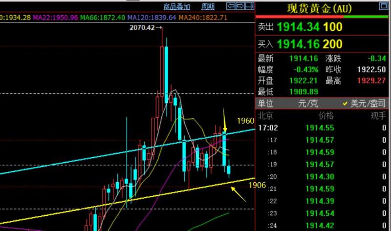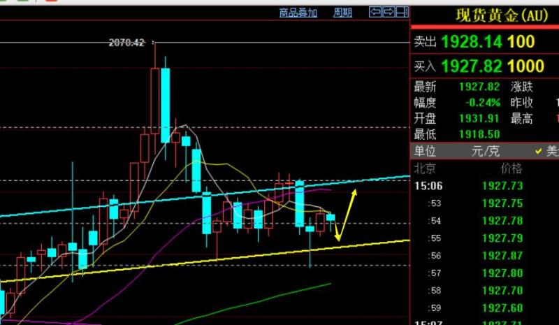郑氏点银:黄金1906上存在买盘,原油98上看震荡 回顾昨日行情走势及出现的技术点: 第一,黄金方面,周二隔夜支撑1890一线探底拉升,且V走法,力度偏大,因为周三早盘存在延续上涨动能,而开盘就延续慢涨逼空上行,就不能等太多回测,依托小时线10均线1922直接跟多,欧盘虽有所回测,但坚守关键中