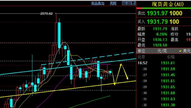 郑氏点银:黄金探底拉升仍震荡,原油同样宽幅震荡 回顾昨日行情走势及出现的技术点: 第一,黄金方面,周一隔夜凌晨后下跌一波破底,周二早盘先反弹,则需先空;按照震荡618法则,先选择1931去埋伏空,而午后触及1928多次承压未上行,也即是50分割就受压,这就表明震荡逐步转弱的迹象,当