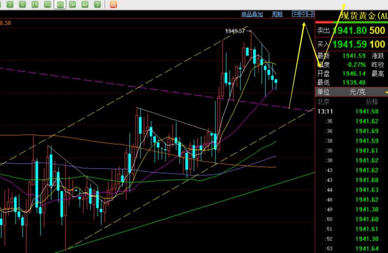 郑氏点银:金银本周震荡反攻上行,原油98支撑稳固 回顾上周五非农行情及出现的技术点: 第一,黄金方面,上周四隔夜收盘前压制1950走跌一波至1932逢低,力度偏大,且重新失守通道趋势支撑,当11点收报大阴包阳形态后,反弹1936下给出短空,而12点收线期间,一直无法下滑,连大阴低点都无