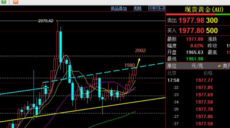 郑氏点银:黄金本周将冲击2000上,原油展开连阳逼空 回顾上周四行情走势及出现的技术点: 第一,黄金方面,上周四凌晨支撑1972上,对于一周以来,随着震荡拉升,低点逐步上移,每一次的起涨低点都作为一定买盘支撑或者说是做多防守;因此,上周四以1970作为防守,回踩依旧继续多为主,但日内欧盘