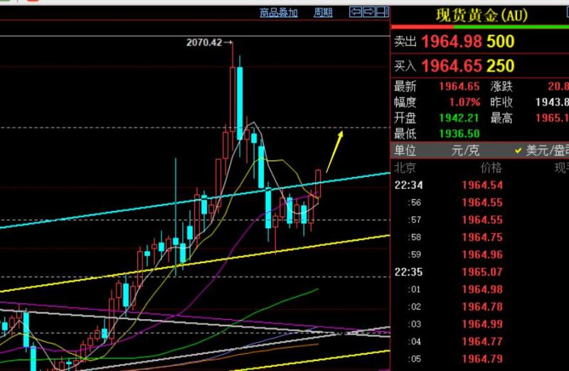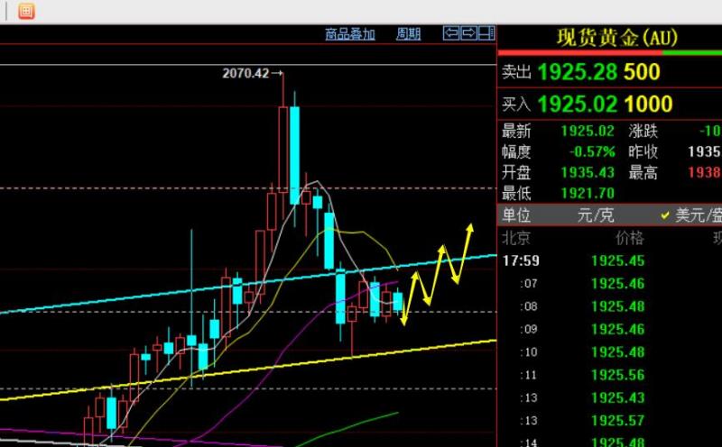 郑氏点银:黄金短期上涨被遏制转为区间震荡,油次高点或落地 回顾上周五行情走势及出现的技术点: 第一,黄金方面,上周五总体的走势为亚盘下跌,欧盘压制回落,但由于前面的趋势是一波逼空上涨,因此美盘探底拉升来进行,日内最高1964,最低1943,日线收报一根十字K,日内依托1948顶底位置,以及1944