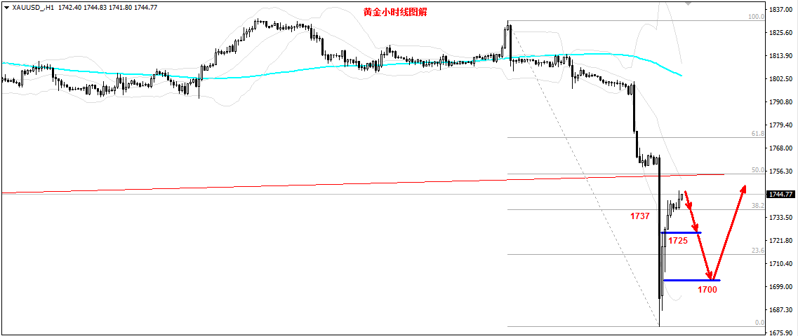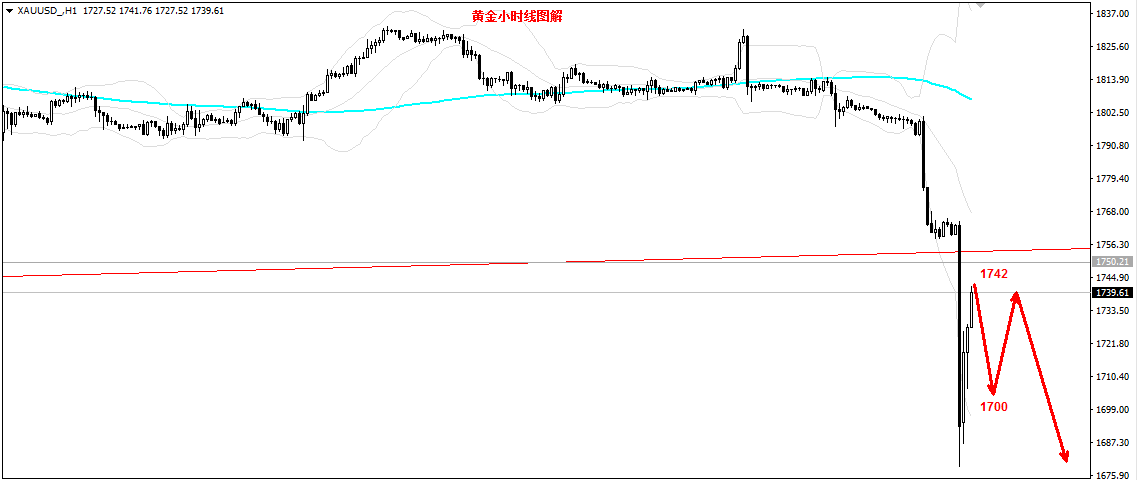 黄金早盘闪崩,现在到了1750下方,有朋友说V反了,而笔者只能说为时尚早,现在要宣布金价反转,时机尚早,没有经过确认。一旦现在转多,就会干到天花板上,所以,只能去空。 自底部1680开始,已经走出5浪反弹。所以,笔者个人的判断是,技术层面的反弹修正即将技术。接下来将延续下行,目标先看1737一线,破位将依次测试