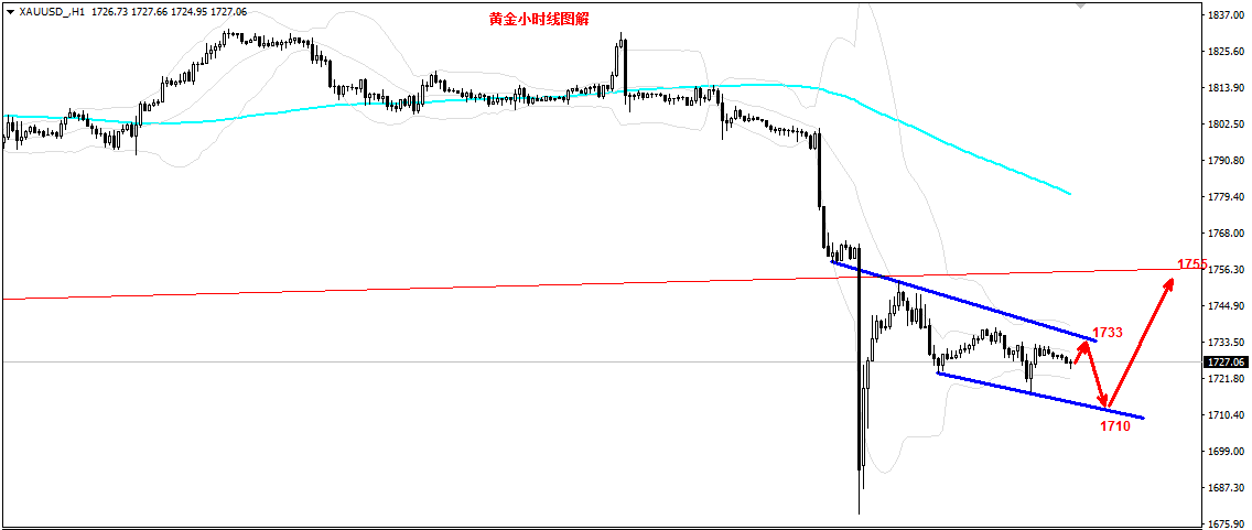 黄金昨日震荡下行,反弹的高点逐步降低,低点不断下探。所以,笔者昨日连续放空,1738,1732,1727空单实现三连胜,拿下20美金的盈利空间,完美收官,跟上操作的朋友想必又是丰收的一天。 黄金今日先空后多。金价昨日尾盘反弹遇阻1733,没有表现出延续性,所以,今日还有一跌。然而昨日破位下跌,反而引发多头报复性反