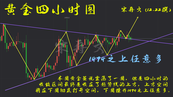 又要开始新一周的行情了,上周黄金可以说走的非常平淡,而越是如此越发引发瞎想,而本周却是决定黄金后市走势的关键,究竟是站稳1480向千五进发,还是回落回归跌势;本周中1480一线位置的得失至关重要;越是接近年末,很多投资朋友就越是心急,想要赶紧赚一点钱或者挽回亏损;但是实际操作中往往因为心急而造成了许多的
