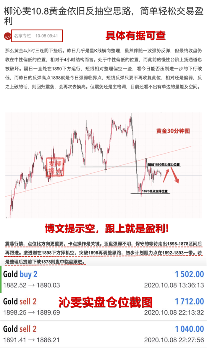 今日的交易多空均收入囊中,意料之中!我们今日在1882的从昨日晚间一直持有至今日,难得的持仓过夜单,最终在1890收割出局!第二单,是在1892按照策略先给到空单的布局,晚间金价反弹至1898附近受阻回落,但是最终均在1889、1886附近盈利走出来!