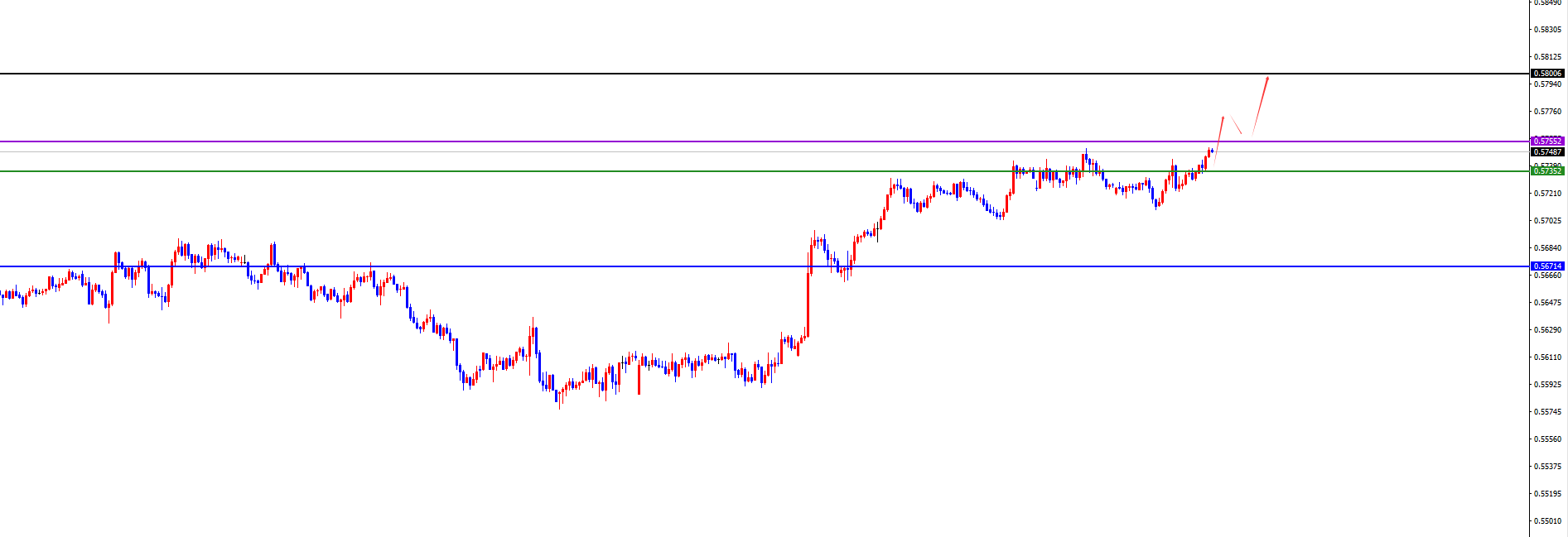 关键分水岭0.5725-35区域,价格没有出现反转之前先维持多