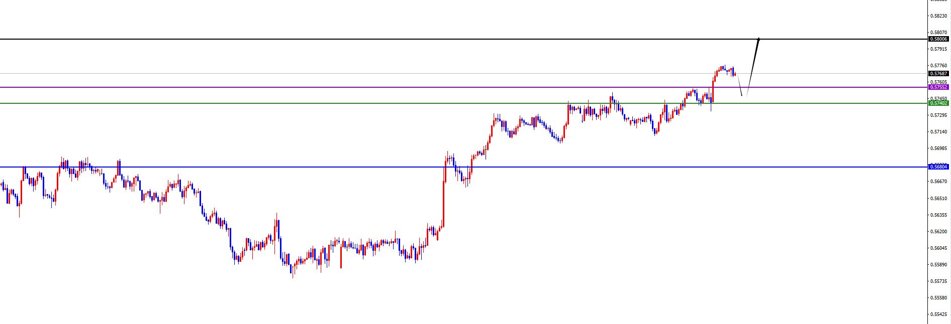 关键分水岭0.5740-50区域,价格没有出现反转之前先维持多