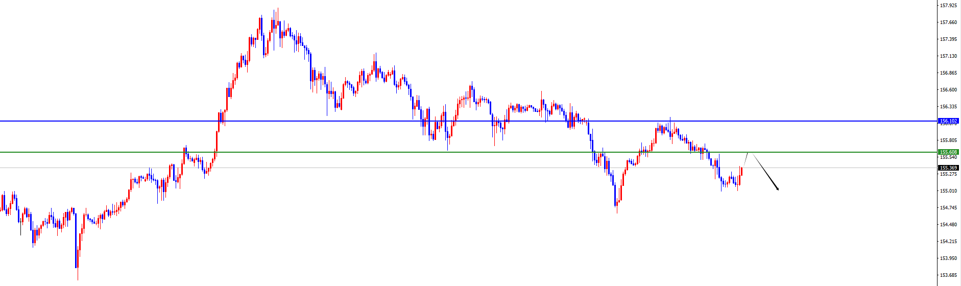 短线分水岭155.60-70区域,价格没有出现反转信号之前维持空