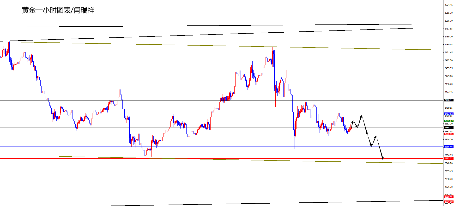 【黄金】 黄金方面,周三黄金价格总体呈现下跌的状态,当日价格最高上涨至2406.91位置,最低下跌至2378.9位置,收盘于2382.87位置。回顾周三黄金市场表现,早间开盘后价格如期先进行向上运行,欧盘期间价格延续反弹,随后美盘后价格正如笔者所言测试日线阻力区域后承压,我们昨日强调于2406-2407区间布局空,回