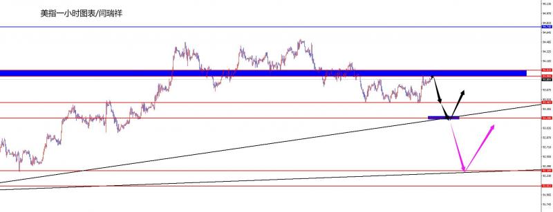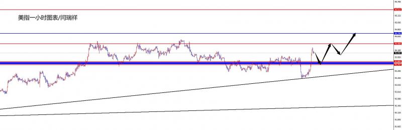 【美元指数】 美元指数方面,回顾周一市场价格表现,日内总体呈现探底回升的状态,当日价格最低于93.458位置,最高上涨至93.942位置,收盘于93.816位置。回顾周一美元指数走势状态,早间开盘后价格短线延续性下跌,在价格短线刺破上周低点位置后企稳反弹,日内一直维持强势的状态,目前针对美元指数我们暂时按照94-93.45