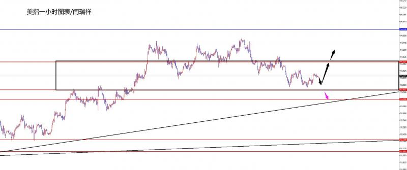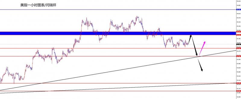 【美元指数】 美元指数方面,回顾周一市场价格表现,日内总体呈现探底回升的状态,当日价格最低于93.458位置,最高上涨至93.942位置,收盘于93.816位置。回顾周一美元指数走势状态,早间开盘后价格短线延续性下跌,在价格短线刺破上周低点位置后企稳反弹,日内一直维持强势的状态,目前针对美元指数我们暂时按照94-93.45