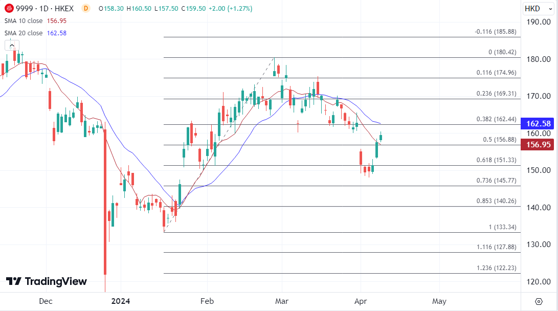 双重利好加持下,网易股价目前录得三连涨,技术上10日均线转为支撑后,上望20日均线在160港元上方的阻力,由于昨日市场已经大幅消化和暴雪复合的利好,所以留意价格会否在上述均线遇阻。