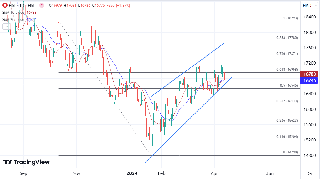 ATFX港股:今早恒指低开逾百点,再度跌穿万七关口。中午收报16799,跌295点或1.7%。国指半日跌89点或1.5%,报5914。科指半日跌38点或1.1%,报3500。沪、深港通南下交易半日净流入33.95亿及23.71亿元人民币。