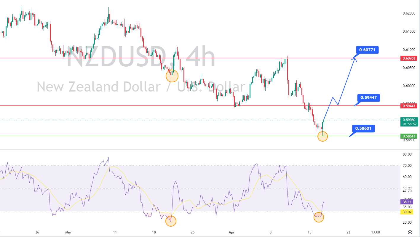 从技术面来看,强劲的支撑位突显了支持和看涨情绪,这可能缓和纽元兑美元的下行。除此之外,在主图上也发现了背离,形成了较低的低点,但在相对强弱指数上形成了较高的高点。汇价有可能反转回上行至第一个阻力位0.59447,如果突破,则可能继续指向0.60771。
