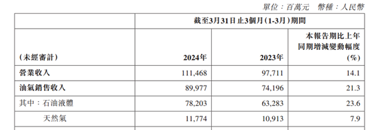 中国海洋石油的一季报公布时间为4月25日,财报发布的第二天,股价大幅跳涨开盘,收盘时仍有3.58%的涨幅,财报激发的乐观情绪具有持续性。具体来看,一季度,中国海洋石油实现营收总额1114.68亿元,相比2023年的977.11亿元大增14.1%;其中还石油液体贡献的营收总额为782.03亿元,占比70%,同比大增23.6%;天然气贡献营收117.74亿元,占比11%,同比增长7.9%。中国海洋石油股价能够在本周创出上市以来新高,核心影响因素就是财报激发的乐观情绪。