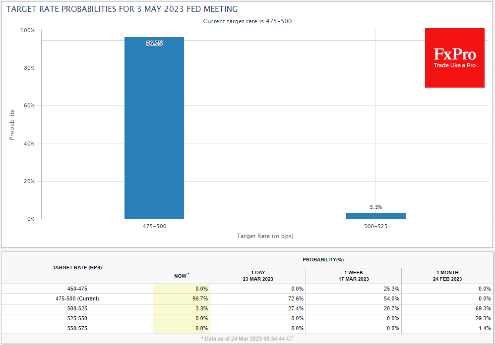 到周五开盘时,市场已将注意力集中在美联储进一步加息的预期上,尽管一个月前,他们在不考虑其他选择的情况下,对加息25-50个基点充满信心。
