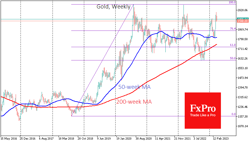 FxPro高级分析师Alex Kuptsikevich指出:黄金从8日低点反弹的势头推动金价在峰值时上涨了200多美元,形成了短期超买的局面。上周,金价短暂触及1940美元下方,过快且冲动,为上涨铺平了道路。