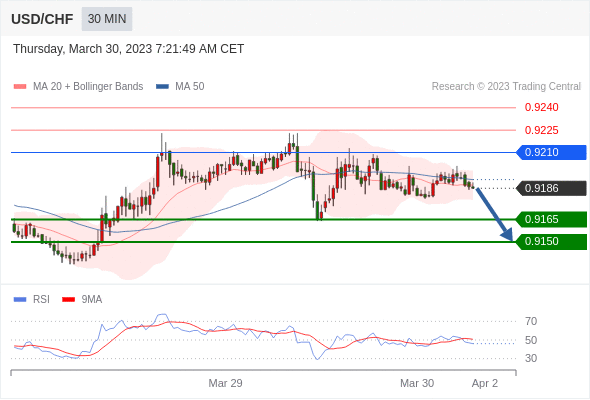 在 0.9210 之下,看跌,目标价位为 0.9165 ,然后为 0.9150 。
