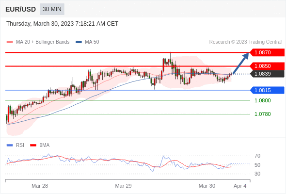 在 1.0815 之上,看涨,目标价位为 1.0850 ,然后为 1.0870 。