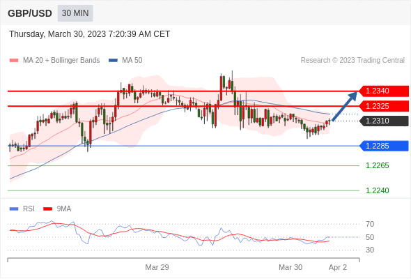 在 1.2285 之上,看涨,目标价位为 1.2325 ,然后为 1.2340 。